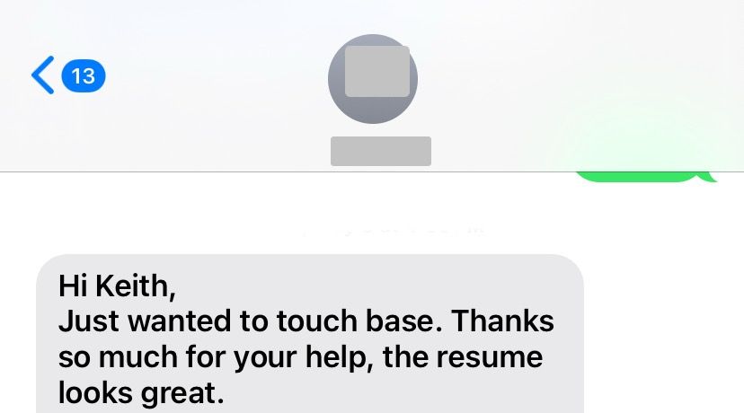 A one-on-one Phone Call/Text/Email with Keith to customize your resume and ensure it reflects your experience and goals.